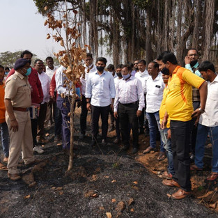 कोल्हापुरातील शेंडा पार्क येथे नुकताच लागलेल्या आगीमुळे नुकसान झालेल्या झाडांची पाहणी करून संबंधित..